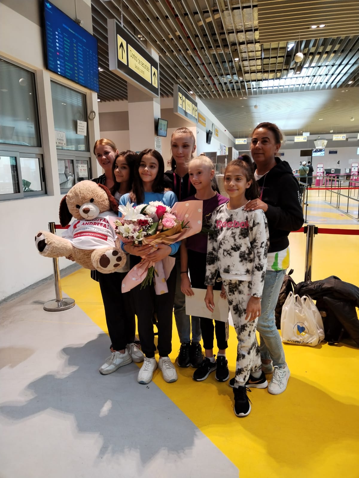GALERIE FOTO – Surpriză uriașă pentru gimnasta Andreea Verdeș! Campioană balcanică absolută în Muntenegru, unde a cucerit 5 medalii de aur, Andreea a fost întâmpinată la aeroport cu flori și multe surprize de către antrenori și colege