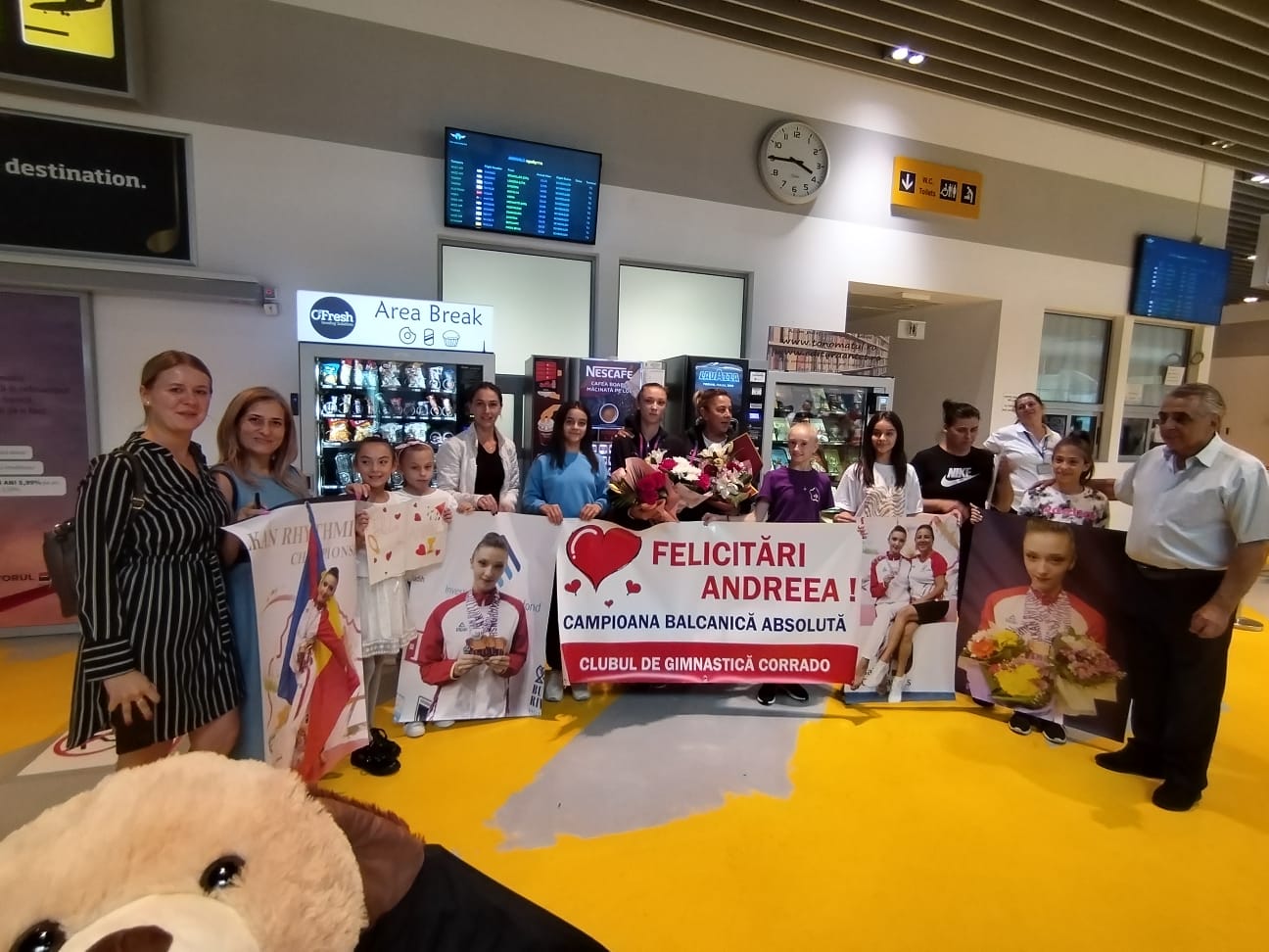La intrarea în terminalul sosiri, Andreea și Cătălina au fost aplaudate nu doar de către sportive și antrenori, ci și de către ceilalți pasageri aflați în acel moment în aeroport. Micuțele gimnaste venite să le întâmpine la aeroport pe Andreea Verdeș și Cătălina Radu au avut mai multe bannere și afișe pe care scria ”Felicitări, Andreea Verdeș, Campioană Balcanică Absolută!