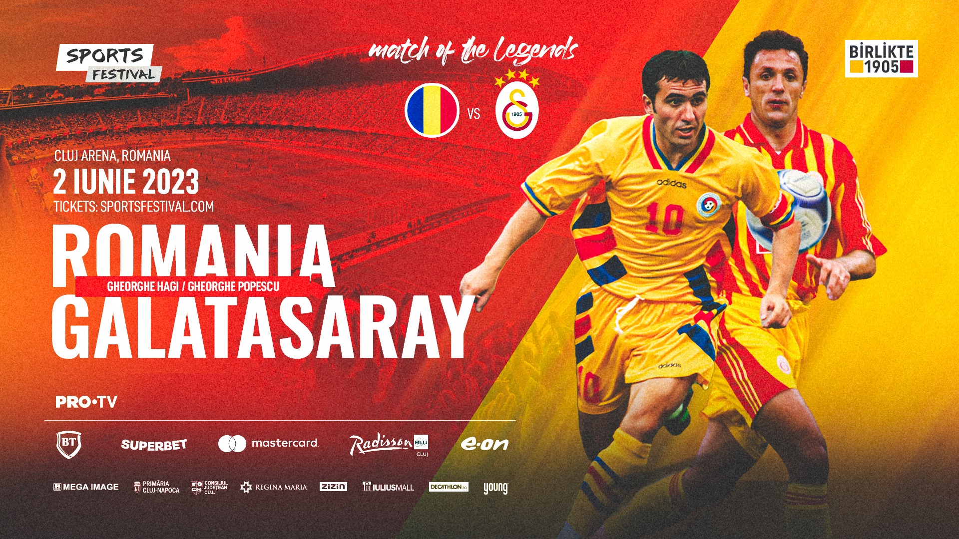 Meciul demonstrativ de fotbal se va juca vineri, 2 iunie, pe Cluj Arena, de la ora 20:30, în cea de-a doua zi a celui mai mare festival dedicat sportului din România. Evenimentul va aduce în teren marii fotbaliști ai Naționalei României (1995-2023) și ai Galatasaray, unul dintre cele mai mari cluburi de fotbal din Turcia. Sportivii și-au pus amprenta nu doar asupra echipei la care au jucat, ci au făcut istorie în fotbalul internațional.