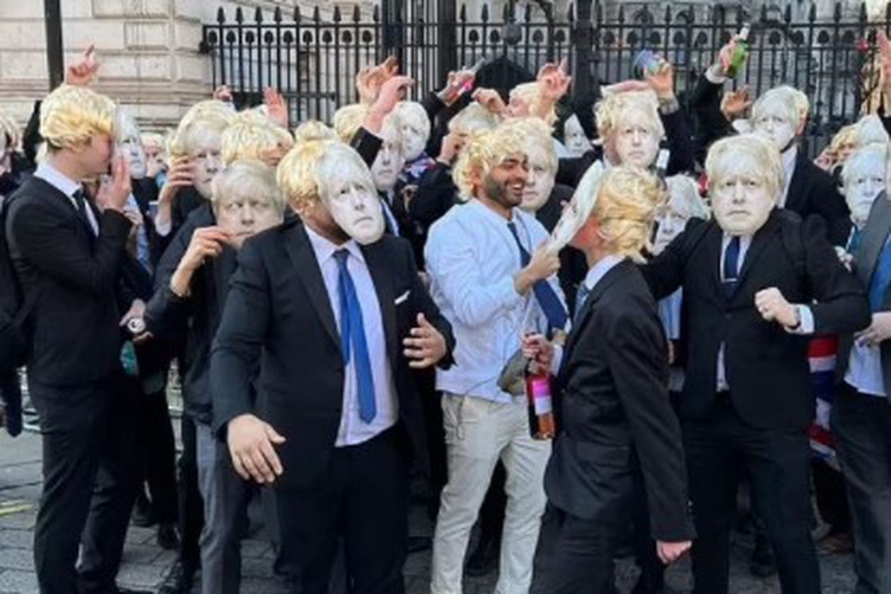 Petrecerile care au fost organizate în pandemie la sediul Guvernului britanic i-au adus nenumărate critici premierului Boris Johnson, al cărui fotoliu se clatină serios de câteva zile. Acestea au dus și la momente amuzante. Mai multe persoane purtând peruci blonde și măști cu chipul premierului britanic au încins o petrecere chiar la porțile Downing Street.