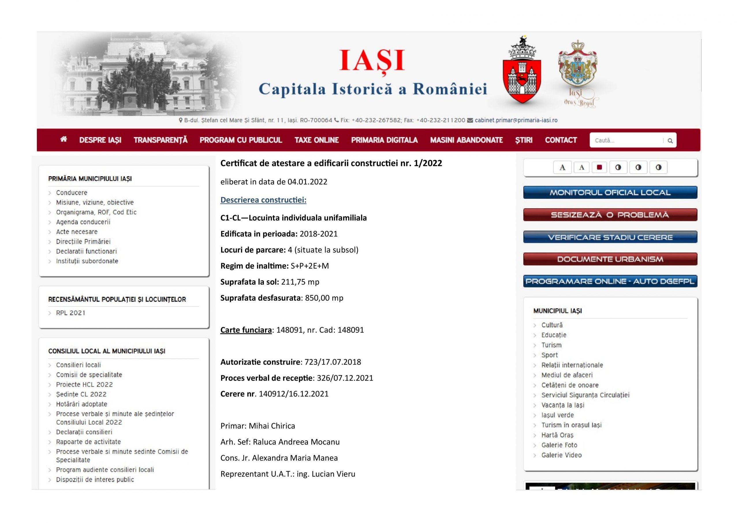În urma unor propuneri venite de la ieșeni (pe rețelele de socializare și în mass-media), s-a decis ca și certificatele de atestare a edificării să fie publicate online, pe site-ul Primăriei Municipiului Iași (www.primaria-iasi.ro).