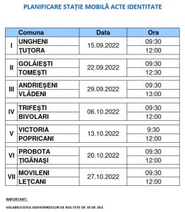 În scopul eficientizării, în perioada estivală, activității de la sediul Serviciului de evidență a persoanelor din Iași informează că începând cu luna septembrie vor fi reluate acțiunile cu stația mobilă în comunele arondate.