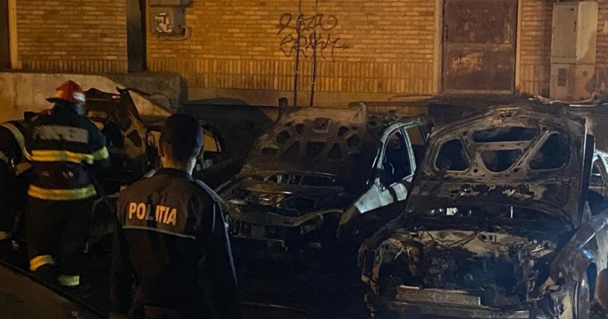 Incendiu a cinci autoturisme în parcarea unui bloc din zona centrală a municipiului Galați
