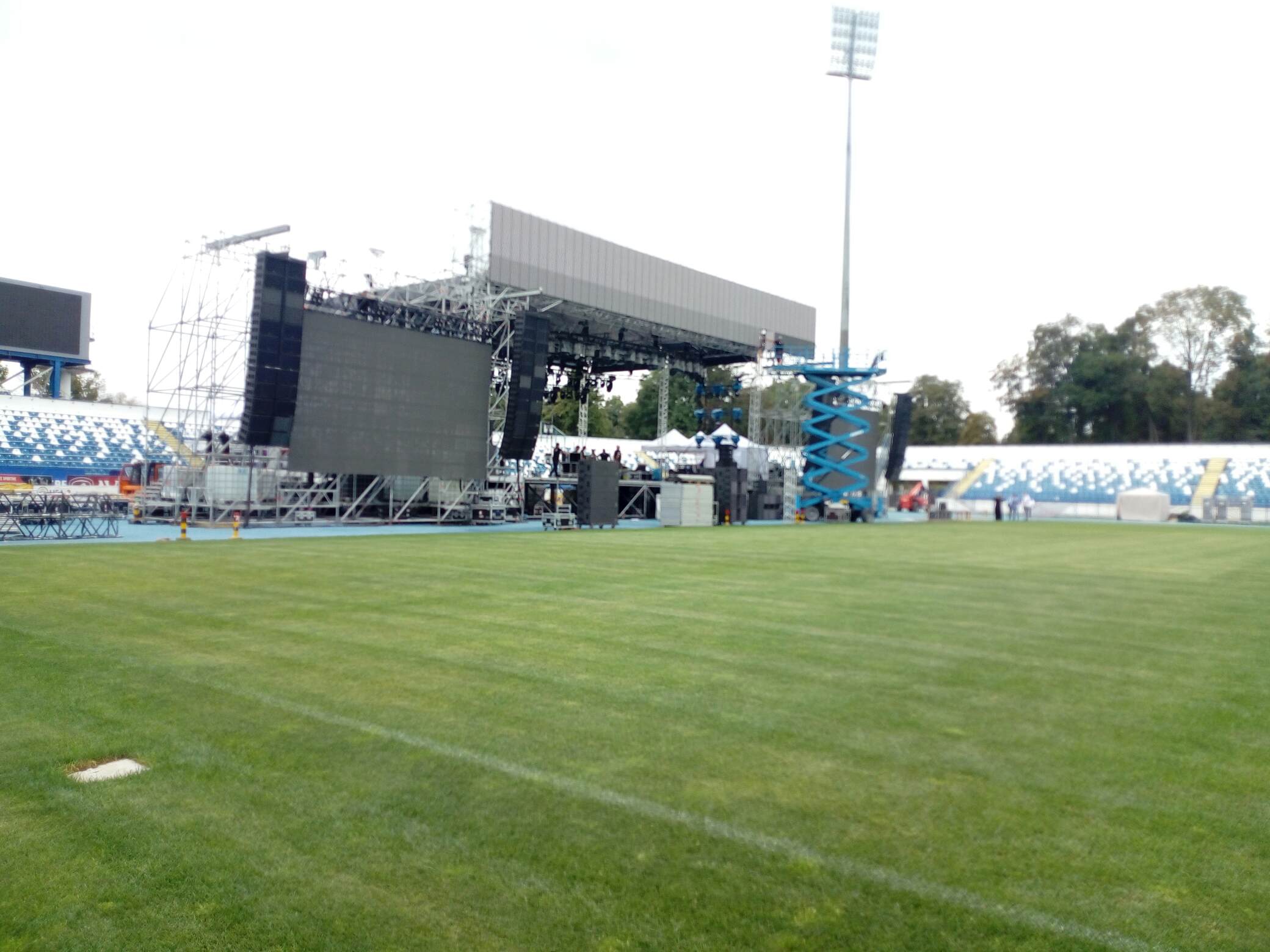 Scena, cea mai mare din România, potrivit organizatorilor, a fost montată pe pista de atletism, în spatele porții de la tabela de scor. Pe teren va fi întinsă o suprafață de protecție numită portaflor, peste care vor fi amplasate scaunele pentru spectatori. Organizatorii au anunțat că au 6.400 de metri pătrați de suprafață protectoare care permite ca iarba să respire și chiar să fie udată.