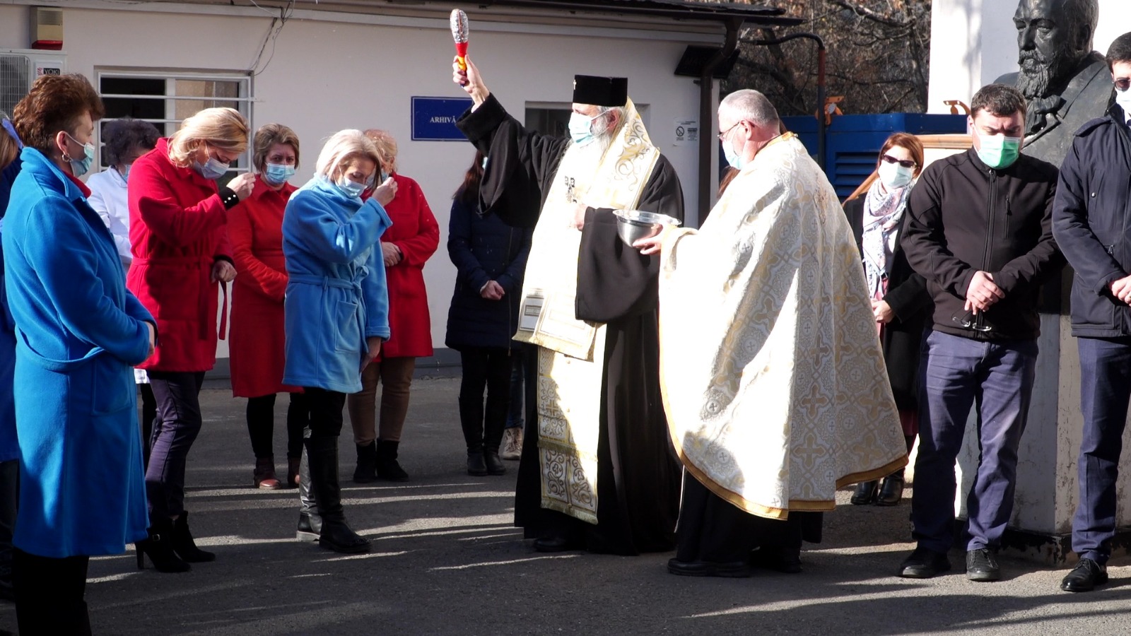 Înaltul prelat a ținut sfântul maslu în fața statuii doctorului Alexandru Slătineanu din curtea unității medicale.