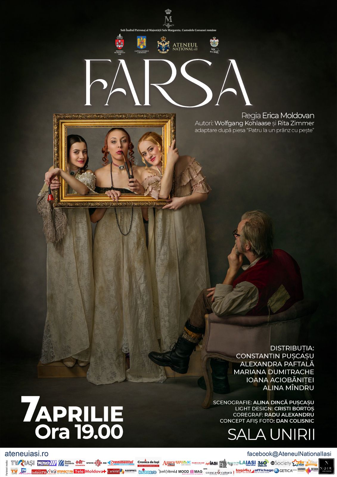 Ateneul Național din Iași vă invită la premiera unei noi producții de excepție: spectacolul de teatru FARSA, care va avea loc marți, 1 aprilie. La cererea publicului, acest spectacol va fi reluat pe 7 aprilie, de la ora 19:00, la Sala Unirii. Regizat de actrița Erica Moldovan, FARSA este o adaptare a piesei „Patru la un prânz cu pește” de Wolfgang Kohlaase și Rita Zimmer, aducând în fața publicului o poveste captivantă, plină de umor, contradicții și momente surprinzătoare.