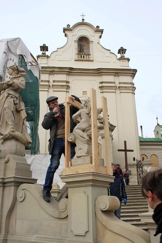 Fotografii făcute în Piaţa Centrală, joi, arată bărbaţi pe scări care înfață în plastic sculpturile zeului roman Neptun şi ale zeiţei greceşti Amphitrite. Figurile din calcar au fost create cu peste 200 de ani în urmă, cu fântâni situate la fiecare dintre colţurile pieţei. În apropiere de catedrala catolică, construită în secolul al XIV-lea, o statuie mai mică a fost învelită în ceea ce părea spumă şi fixată cu bandă.