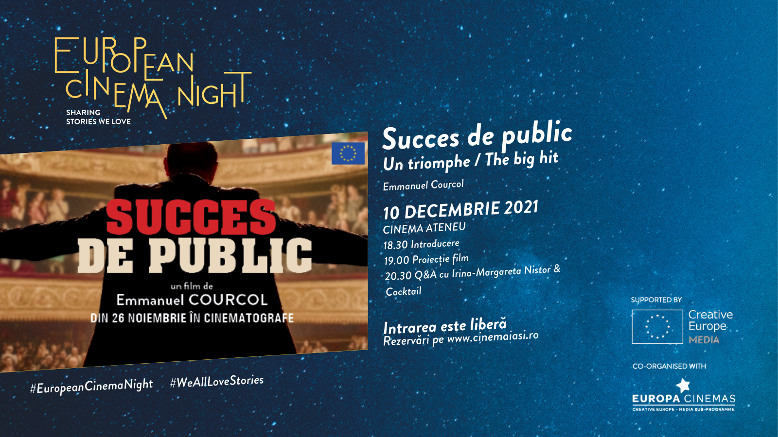 Pe 10 decembrie 2021, la Cinema Ateneu are loc European Cinema Night, un eveniment care anul acesta este organizat în 80 de orașe din Europa. De la ora 18.30, filmul Succes de public/ The big hit rulează în prezența criticului de film Irina-Margareta Nistor.