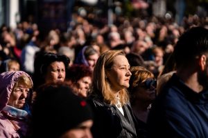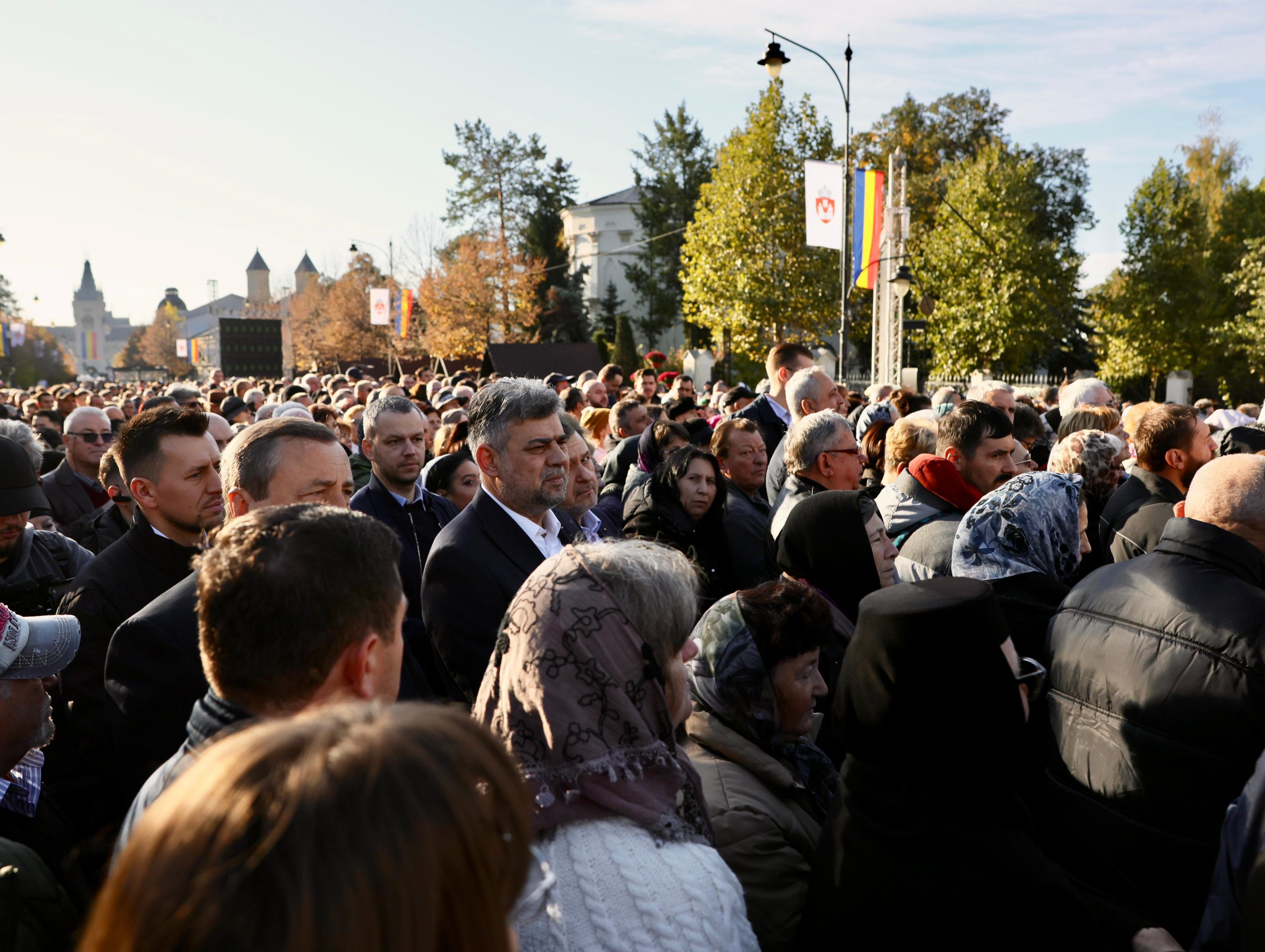 Marcel Ciolacu, Nicolae Ciucă şi Elena Lasconi au urmărit slujba din mulţime, şi nu de pe scena amenajată pentru oficialităţi.
