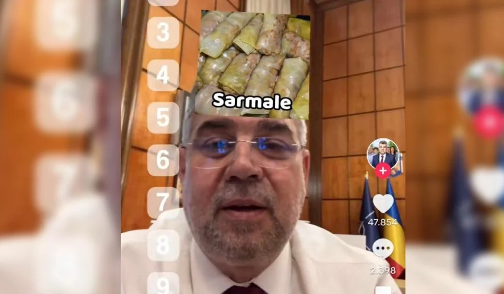 Marcel Ciolacu devine viral pe TikTok cu sarmale pe cap, din biroul său de prim-ministru al României