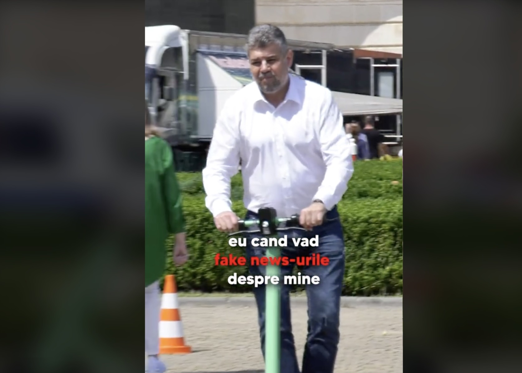 Marcel Ciolacu a postat joi seară, pe TikTok, un clip în care se plimbă pe o trotinetă, într- parcare. Mesajul care însoțește clipul este ”eu, când văd fake news-urile despre mine„. Postarea a strâns peste 7.000 de afișări în câteva minute.