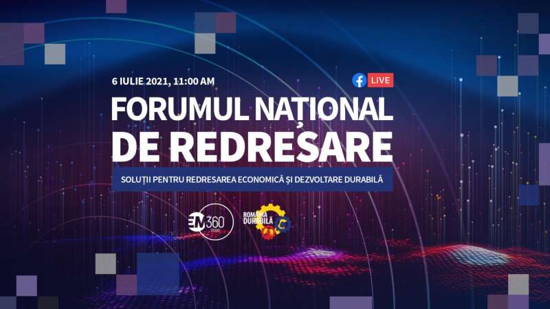 Marți, pe data de 6 iulie, de la ora 11.00, România Durabilă și EM360 organizează Forumul Național de Redresare, un eveniment online tip dezbatere cu privire la oportunitatea României prin Mecanismul de redresare și reziliență.