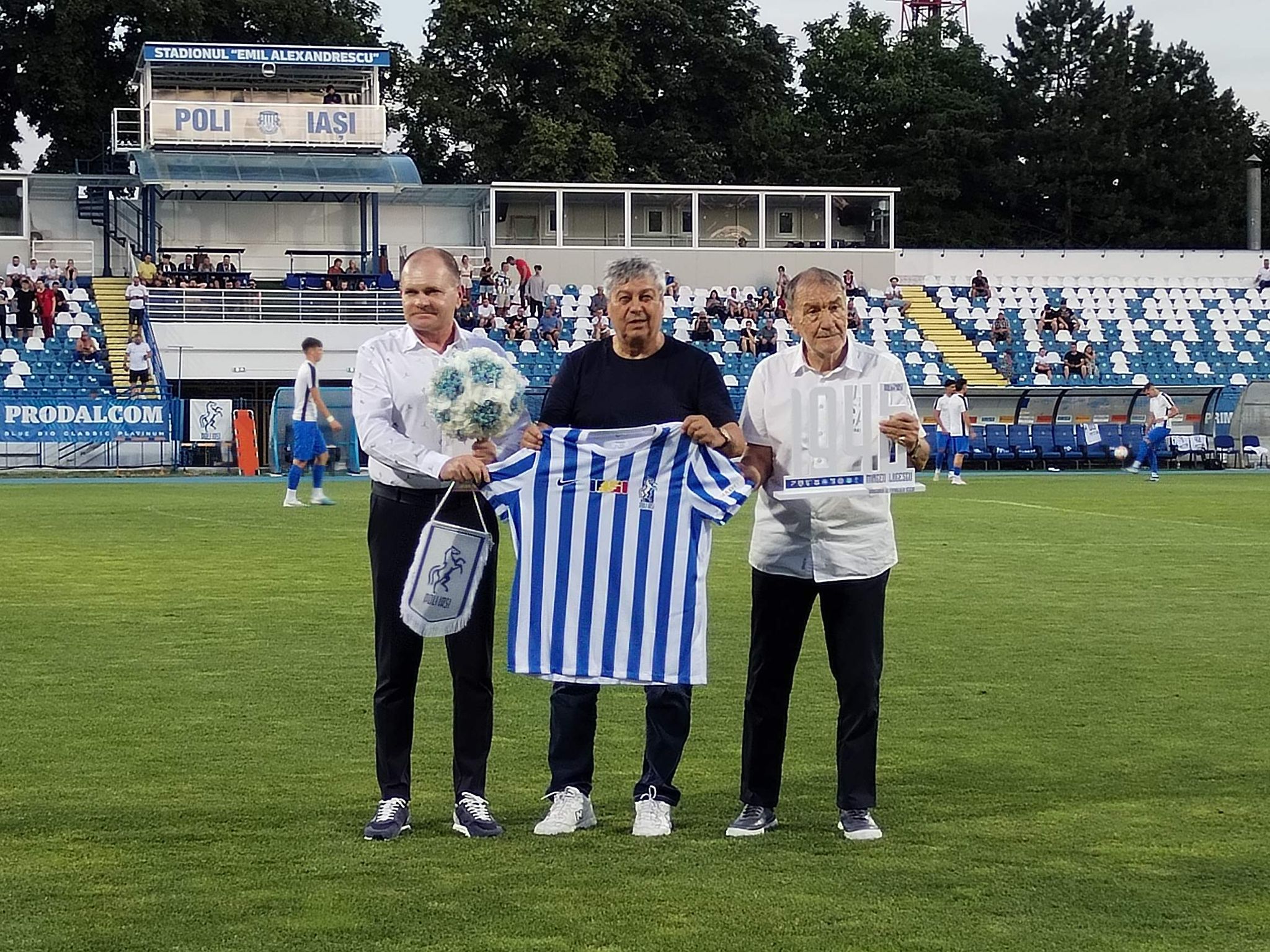 Politehnica Iași și-a prezentat lotul, sâmbătă seară, pe Stadionul Emil Alexandrescu, într-un amical cu Zimbru Chișinău. La pauza meciului, Mircea Lucescu a coborât de la tribuna oficială, în uralele publicului, însoțit de președintele Cornel Șfaițer și fosta mare glorie a Iașiului, Vasile Simionaș, pentru a primi titlul simbolic de Ambasador.