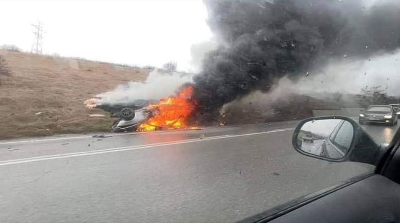 Șoferul autoturismului ar fi pierdut controlul volanului și s-a răsturnat cu mașina într-un șanț. Conducătorul mașinii a reușit să iasă din timp din autovehicul.