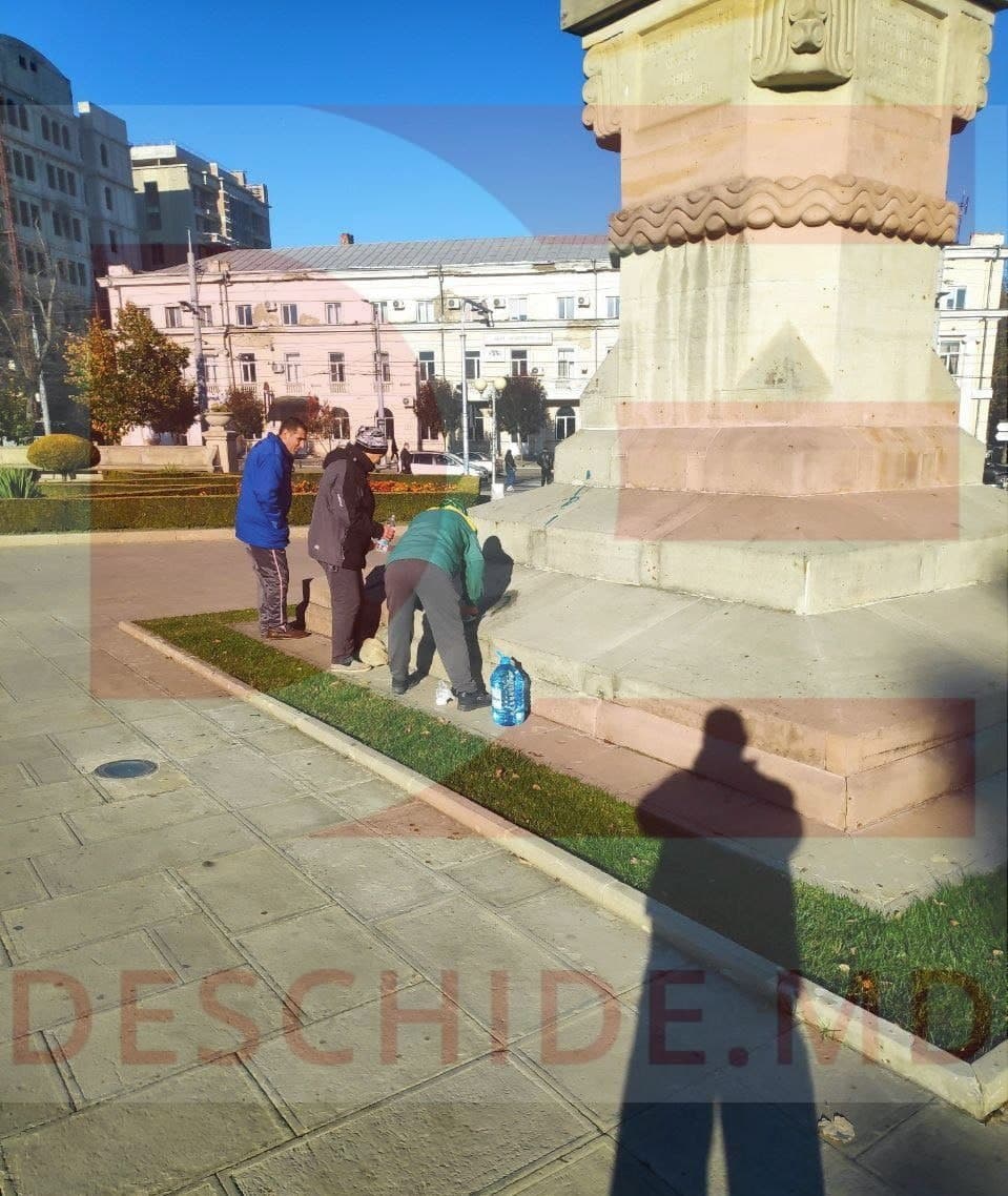 Totodată, au fost informate și serviciile Primăriei Chișinău. În acest sens, spre monument s-a deplasat și o echipă a Î.M. „Spații Verzi”, care au curățat verdele de briliant.