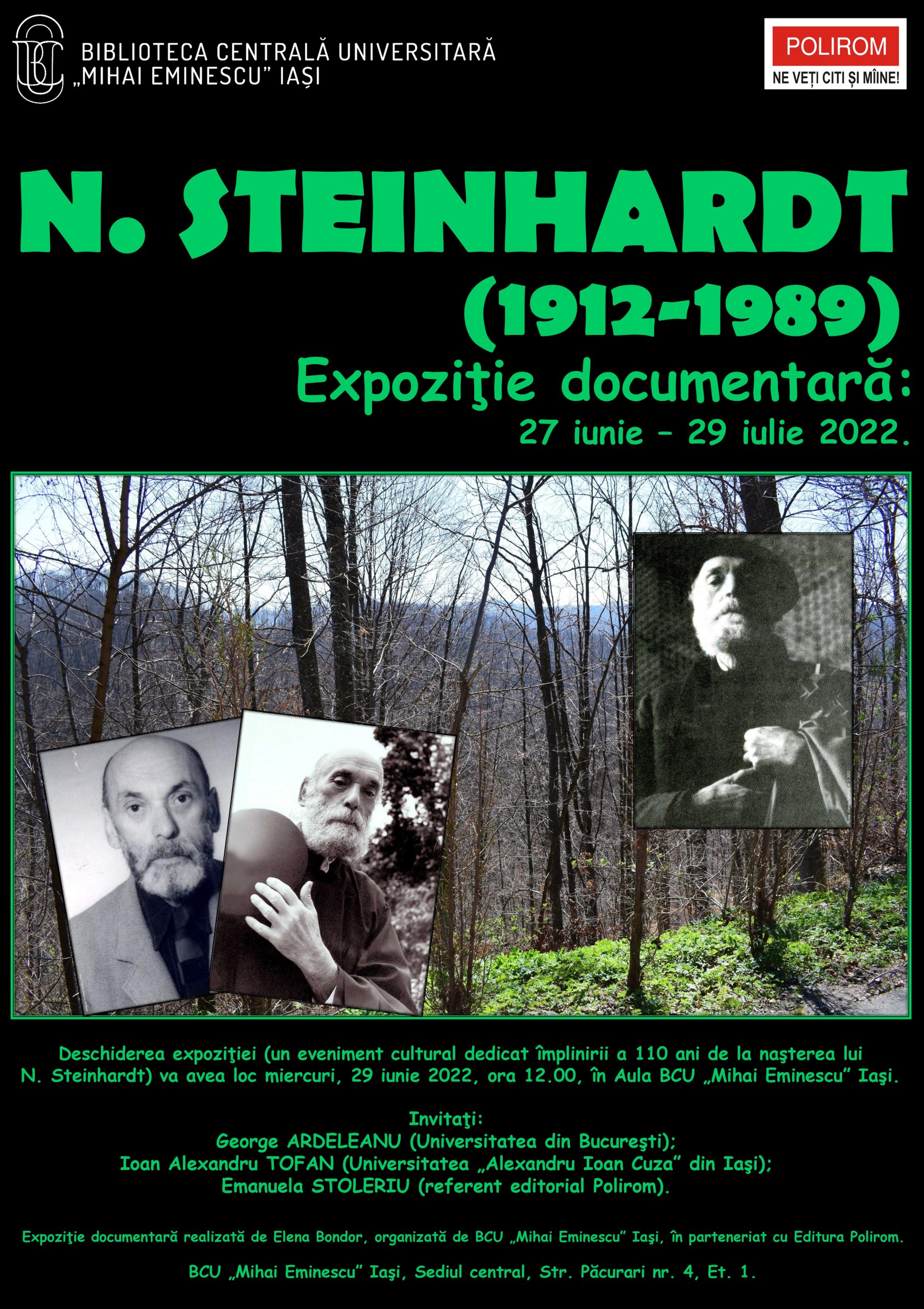 Biblioteca Centrală Universitară „Mihai Eminescu” Iaşi organizează, în parteneriat cu Editura Polirom, în perioada 27 iunie – 29 iulie 2022, expoziţia documentară „N. Steinhardt (1912-1989)”, cu prilejul împlinirii a 110 ani de la naştere.