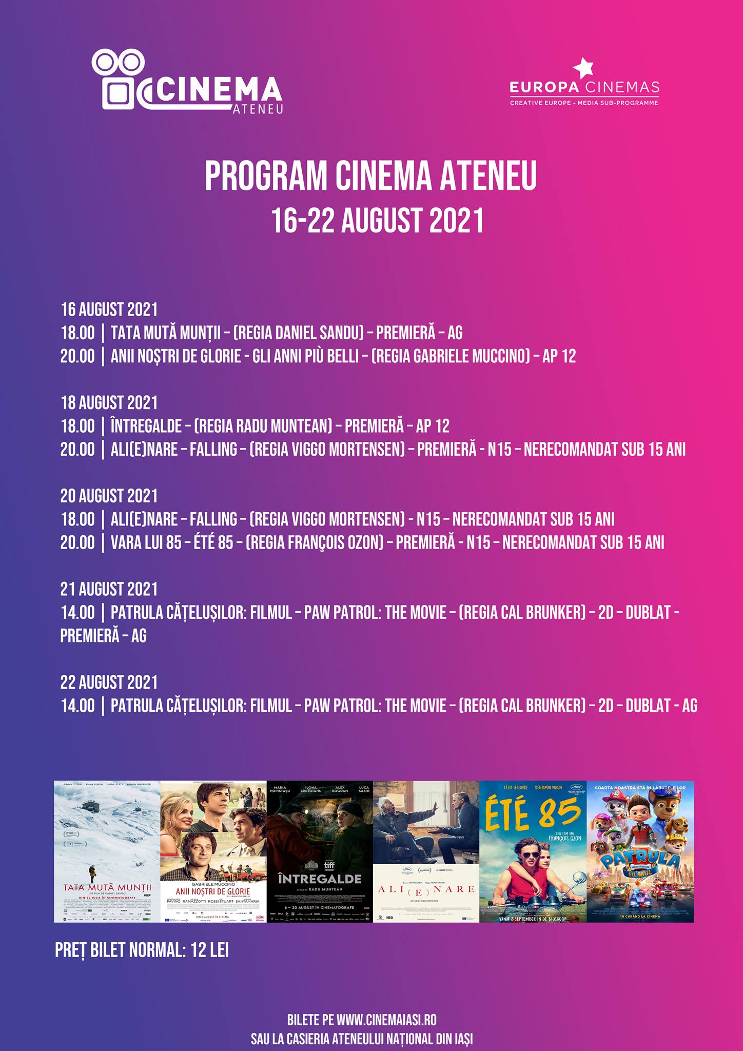 Noi filme în premieră la Cinema Ateneu Iași. Iată programul săptămânii