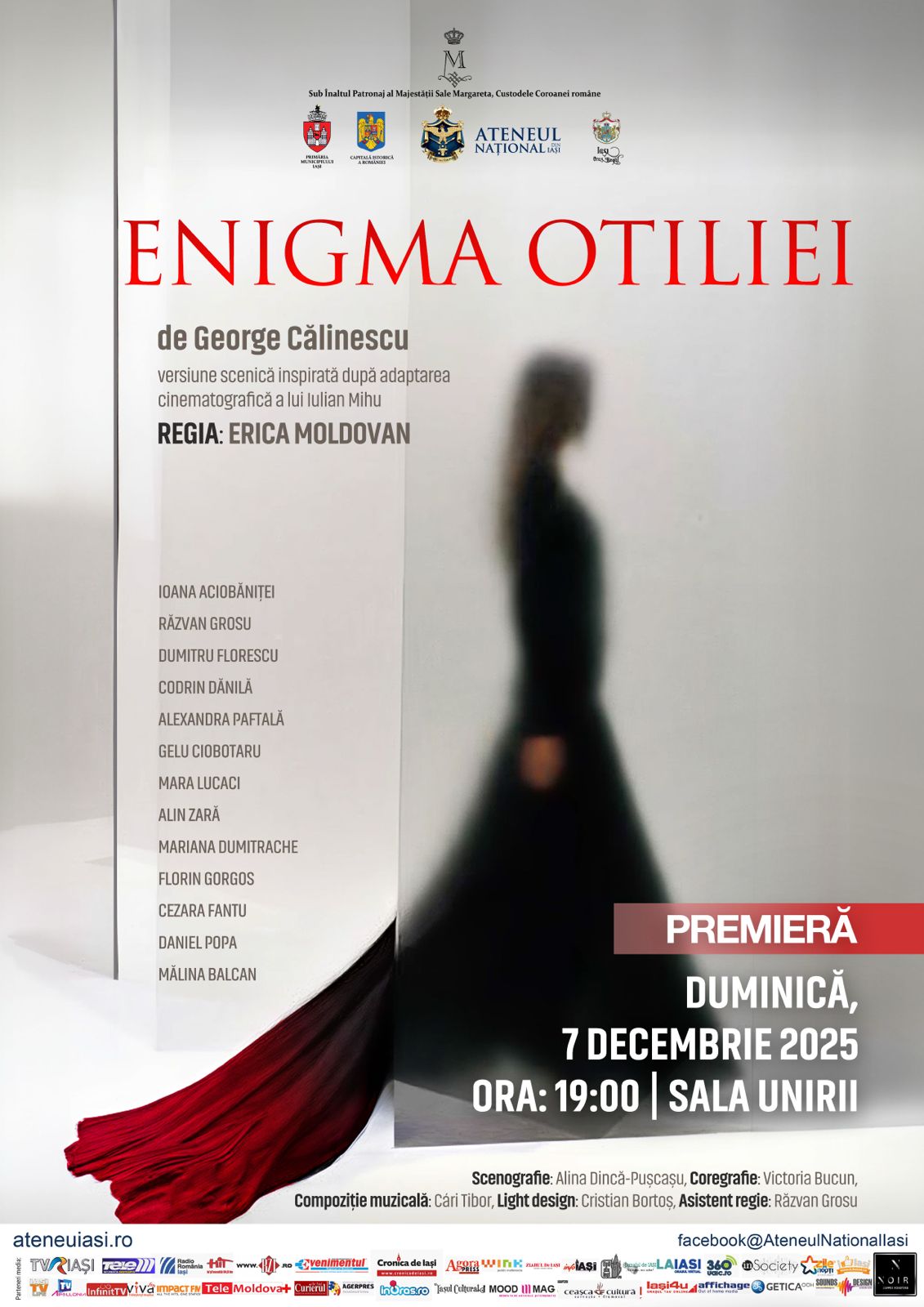Ateneul Național din Iași încheie anul cu premiera spectacolului „Enigma Otiliei”, programat între 7 și 9 decembrie 2025, de la ora 19:00, la Sala Unirii, Cinema Victoria. Regia îi aparține Ericăi Moldovan, care propune o versiune scenică modernă, inspirată din filmul lui Iulian Mihu, pe scenariul lui Dan Herford.