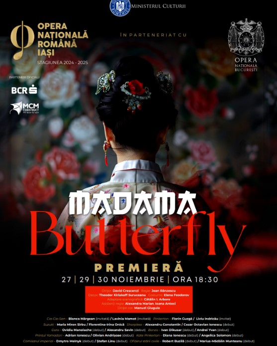 Opera Națională Română din Iași va prezenta, la finalul lunii, a treia premieră a anului, precedentele fiind „Turandot”, de Giacomo Puccini și „Făclia de Paști”, de Alexandru Zirra. Noul titlu propus publicului este „Madama Butterfly”, de Giacomo Puccini.