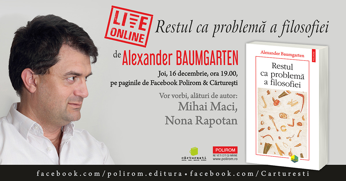 Joi, 16 decembrie, ora 19.00, pe paginile de Facebook Polirom & Cărturești