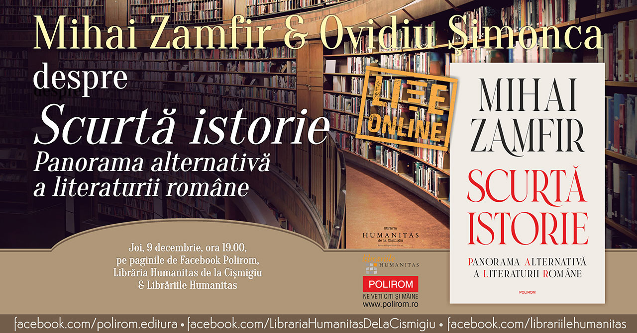 Joi, 9 decembrie 2021, ora 19.00, pe paginile de Facebook Polirom și Librăria Humanitas de la Cișmigiu, Mihai Zamfir va intra în dialog cu Ovidiu Șimonca pornind de la volumul Scurtă istorie. Panorama alternativă a literaturii române, apărut de curând la Polirom, ediția a II‑a revăzută și adăugită, cartonată.