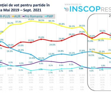 AUR și-ar fi dublat procentul obținut la alegeri, indică sondajul, ajungând în septembrie 2021 la 17,1% intenție de vot. Criza politică declanșată la începutul lui septembrie a adus AUR la finalul acestei luni la un scor de 17,1%, potrivit datelor unui sondaj INSCOP. O creștere …
