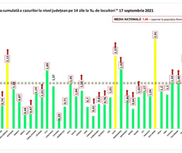Grupul de Comunicare Strategică a anunțat că 224 de localităţi au incidenţa cumulată la 14 zile mai mare sau egală cu trei la mia de locuitori. Din toate aceste localităţi, 48 au incidenţa peste cinci la mia de locuitori. Cea mai mare incidenţă, de 10,03, …
