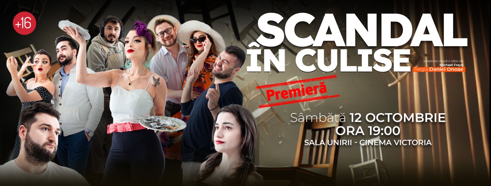 Pe 12 octombrie, la ora 19:00, Ateneul Național din Iași invită publicul la una dintre cele mai așteptate premiere teatrale ale anului, „Scandal în culise”, ce se va desfășura la Sala Unirii, fostul Cinema Victoria. Adaptat după o idee de Michael Frayn, spectacolul regizat de Daniel Onoae promite să ofere publicului o comedie spumoasă, presărată cu momente hilare și neprevăzut, aducând în prim-plan viața tumultoasă din culisele unei producții teatrale.
