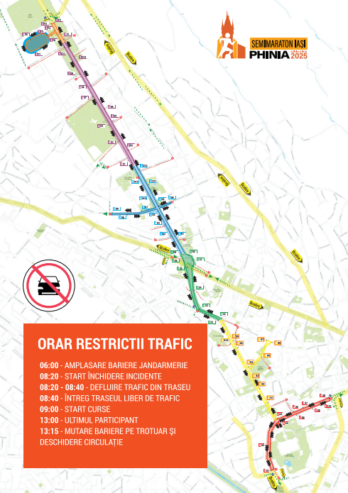 Pe 27 aprilie 2025, Iașul aleargă cu inima la cea de-a noua ediție a Semimaraton Iași. Pentru buna desfășurare a evenimentului sportiv, în intervalul orar 06:00 – 13:15 vor fi impuse restricții temporare de trafic rutier pe traseul cursei.