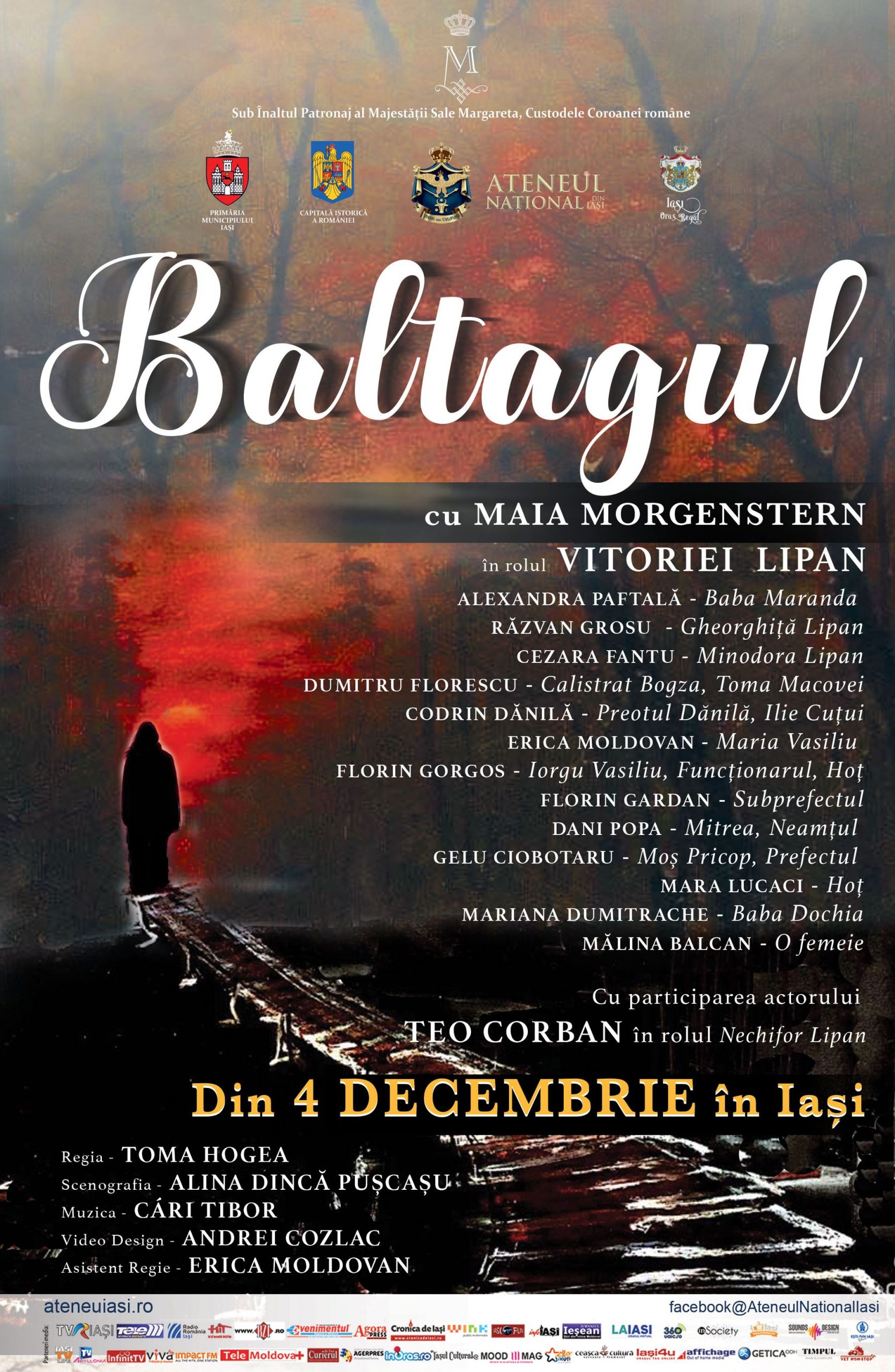 După două reprezentații sold out, la Ateneu, piesa de teatru „Baltagul”, cu Maia Morgenstern, este programată la Sala mare a Teatrului Național Iași, pe data de 5 decembrie. Dramatizarea romanului „Baltagul” de Mihail Sadoveanu va fi pusă în scenă de regizorul Toma Hogea. Având-o pe celebra actriță Maia Morgenstern în rolul principal, piesa de teatru va avea premiera pe 6 decembrie, de la ora 19, în Sala Mare de Spectacole „Radu Beligan”.