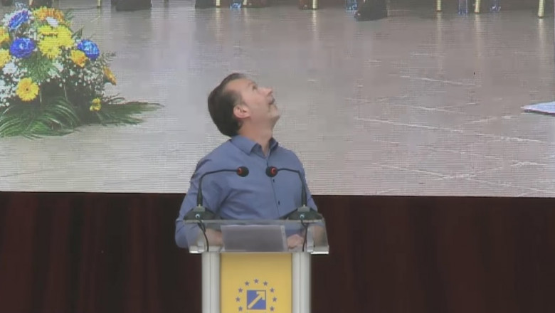 Discursul lui Florin Cîțu a fost întrerupt de un porumbel care s-a așezat pe scenă, unde se afla și Ludovic Orban.