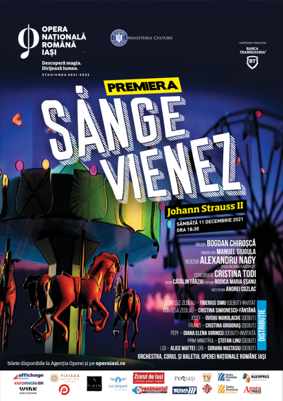 L-a completat de coordonatorul artistic al instituției, Andrei Fermeșanu: „Opera Națională din Iași prezintă în luna cadourilor premiera Sânge vienez de Johann Strauss (fiul), completând stilistic repertoriului instituției. Spectatorii sunt așteptați la o infuzie de bună-dispoziție și atmosferă spumoasă, cu elemente scenice care țin de musical, grație punerii în scenă a regizorului Alex Nagy și a coregrafiei semnate de Cristina Todi. Maestrul Bogdan Chiroșcă este dirijorul spectacolului, distribuțiile fiind omogene și echilibrate. Așadar, asigurați-vă că la ora spectacolului sunteți pregătiți de întâlnirea cu un eveniment artistic viu, energic și savuros”.