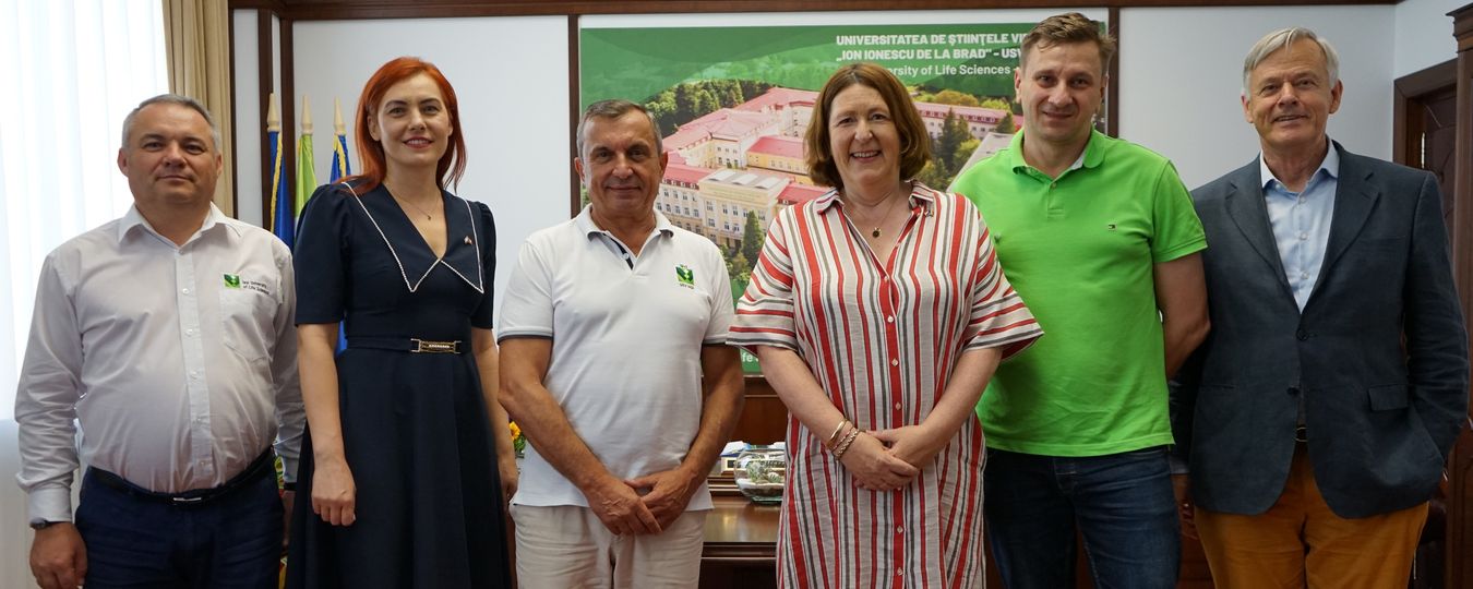 Relațiile de colaborare dintre instituțiile amintite au început a fi consolidate în luna aprilie a acestui an, când a fost organizată 𝗖𝗼𝗻𝗳𝗲𝗿𝗶𝗻𝘁̦𝗮 𝗜𝗻𝘁𝗲𝗿𝗻𝗮𝘁̦𝗶𝗼𝗻𝗮𝗹𝗮̆: „𝗩𝗶𝗶𝘁𝗼𝗿𝘂𝗹 𝗽𝗿𝗼𝗱𝘂𝗰𝘁̦𝗶𝗲𝗶 𝗮𝗴𝗿𝗼𝗮𝗹𝗶𝗺𝗲𝗻𝘁𝗮𝗿𝗲”, care a prezentat o abordare holistică a proceselor de producție agroalimentară sustenabilă. Desfășurată la Iași, în Aula Magna „Haralamb Vasiliu”, Conferința a reprezentat un deosebit prilej de prezentare a noilor cercetări și proiecte de succes din domeniu, alături de inovații și tehnologii de precizie pentru creșterea eficienței proceselor de producție pe lanțul alimentar. Cei peste 20 de speakeri invitați din România și Regatul Țărilor de Jos au prezentat modele de bune practici de agricultură sustenabilă, precum și performanțele obținute de aceștia în domeniul agroalimentar.
