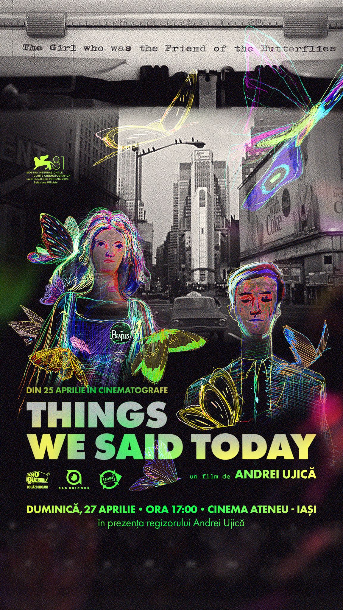 Andrei Ujică: „Abia aștept reîntâlnirea cu publicul ieșean după o absență de 15 ani, atunci cînd am fost prezent cu filmul « Autobiografia lui Nicolae Ceauşescu” „TWST / Things We Said Today” este cel mai recent film al reputatului cineast româno-german Andrei Ujică, un hibrid fascinant între documentar și eseu vizual, construit în jurul unui moment legendar din istoria culturii pop – primul concert susținut de The Beatles pe Shea Stadium, în august 1965.