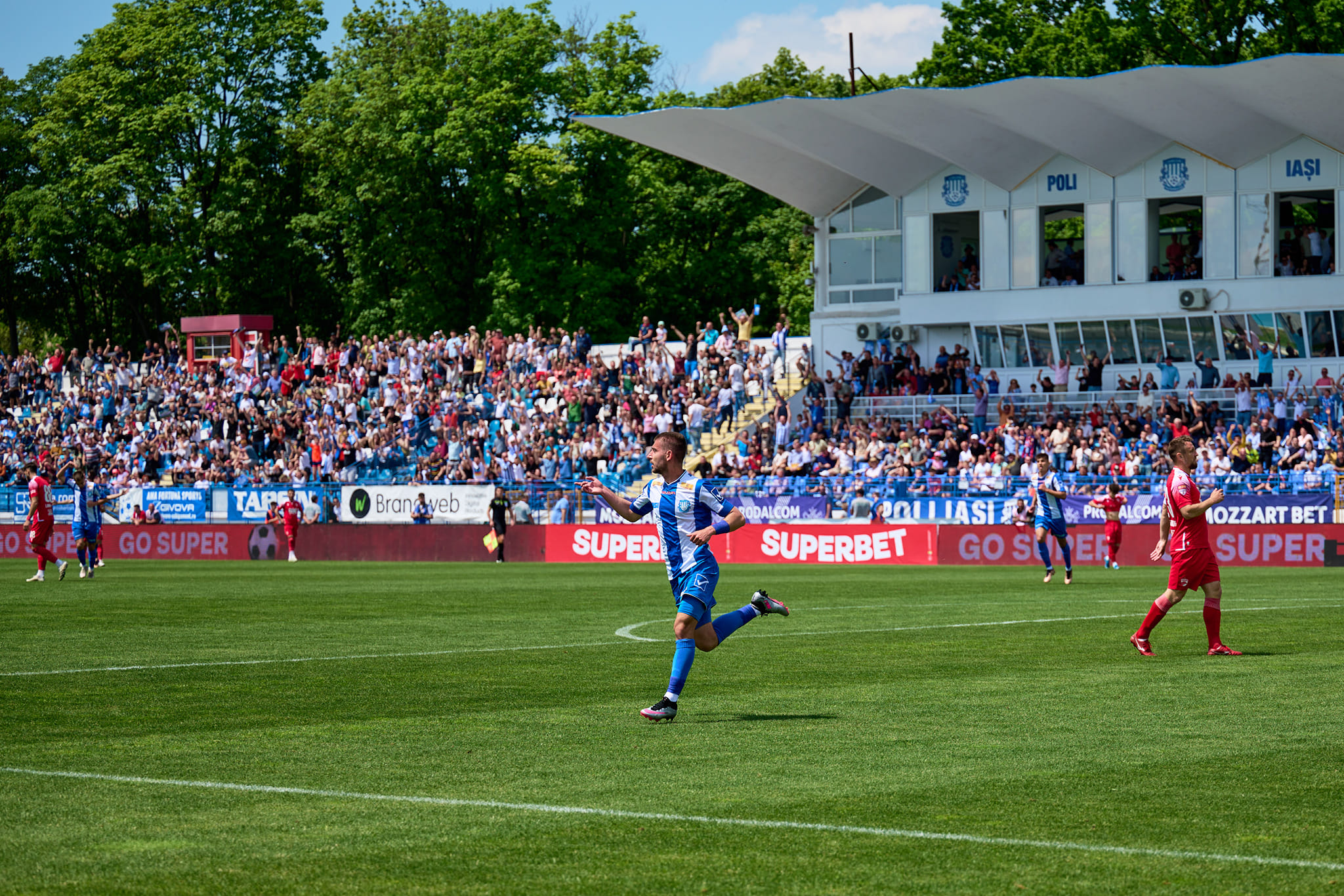 Politehnica Iași s-a despărțit de Liga 2 cu o victorie categorică, 4-1 pe teren propriu cu Dinamo, într-un meci la finalul căruia echipa din Copou a primit medaliile și trofeul de campioană. A fost o sărbătoare pe Stadionul ”Emil Alexandrescu”, cu peste 10.000 de spectatori în tribune, record pentru sezonul în curs, dar și pentru ultimii mulți, mulți ani. Asta după ce și la precedentele două meciuri de pe teren propriu, cu Oțelul Galați și Steaua București, stadionul a fost plin.