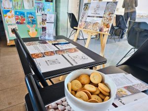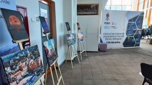 Și pentru că suntem la 3 ani de război, m-am gândit că nu doar asta e imaginea celor care au venit din Ucraina, e și imaginea integrării și atunci i-am pus în compania lucrărilor lor făcute la atelierile de terapie. Dincolo avem antreprenorii, în total sunt, conform statisticilor, 47 de antreprenori. Au business-uri mai mari sau mai mici, unele afaceri sunt relocate din Ucraina.