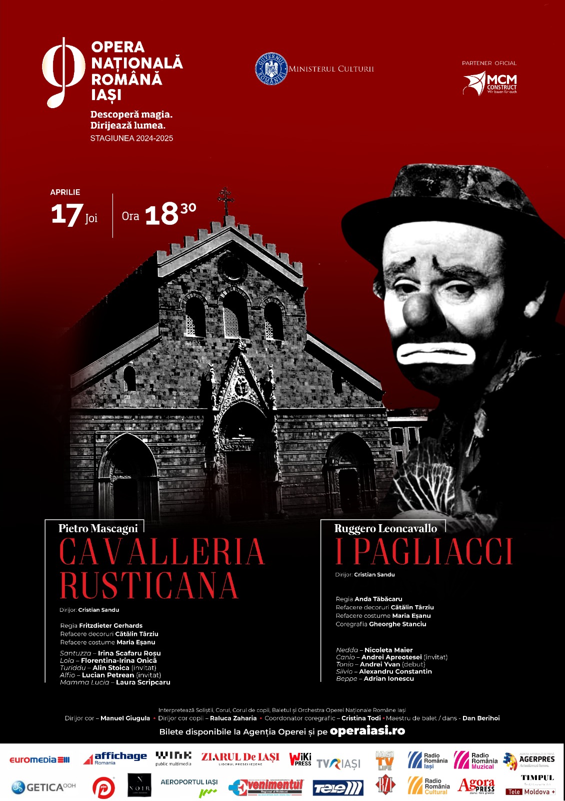 Opera Națională Română din Iași programează mâine spectacolul-coupé „Cavalleria rusticana”, de Pietro Mascagni /„I Pagliacci”, de Ruggero Leoncavallo. Cele două opere sunt considerate a fi titluri de referință ale curentului verist, apărut în Italia, la sfârșitul secolului al XIX-lea, ca opus al romantismului.