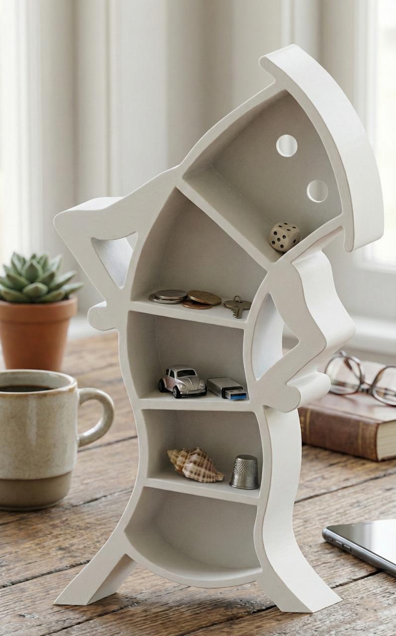 Elias surprinde plăcut și prin imprimarea unor rafturi și dulăpioarele monocrome, surprinse în expresii umanizate, care duc cu gândul la unele filme de desene animate care ne-au fermecat copilăria și continuă să fascineze noile generații.