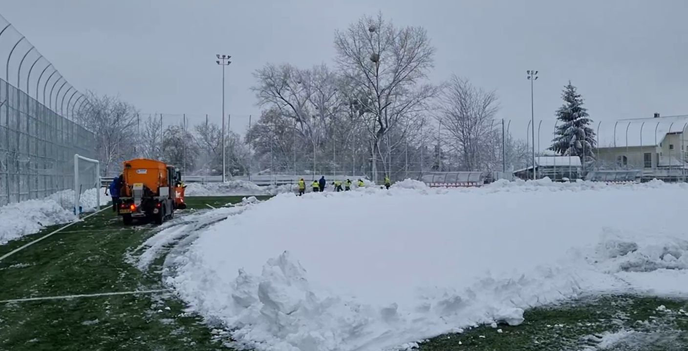 Cum la Iași ninge neîncetat de mai bine de 24 de ore, terenurile din Complexul Emil Alexandrescu au fost acoperite cu un strat groz de zăpadă, iar activitatea echipelor din Copou a fost dată peste cap.
