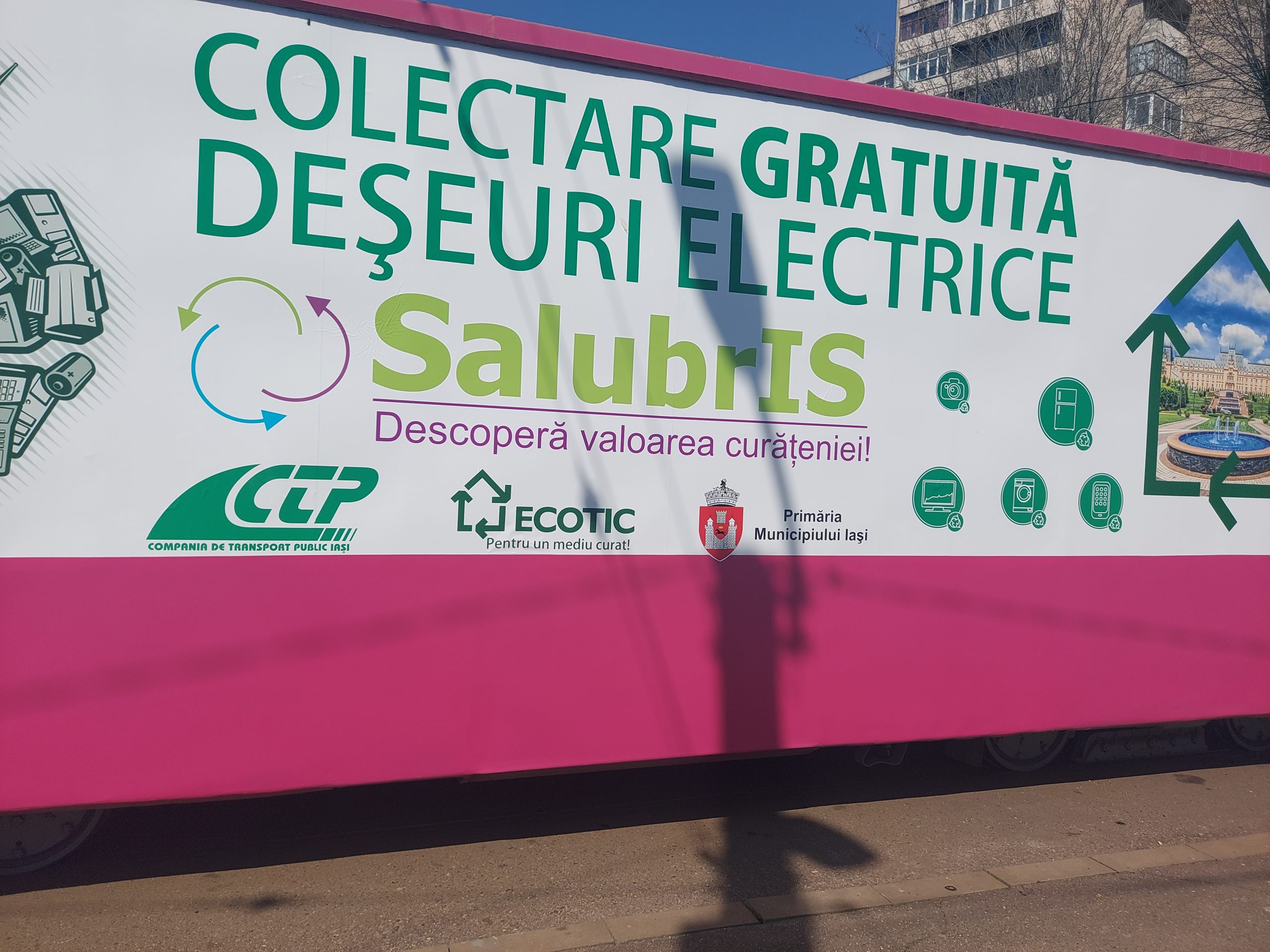 Aveți electrocanice de care nu știți cum să scăpați. E simplu de sîmbătă. Le preia tramvaiul reciclării. Primăria Iași, Salubris și compania Ecotic lansează proiectul „Deșeurile electrice sunt transportate electric spre reciclare „
