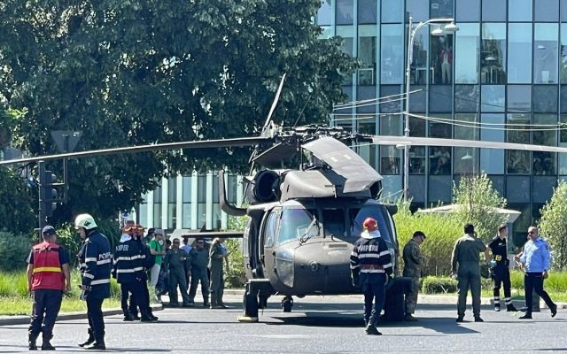 Elicopterul Black Hawk era în survol alături de alte cinci astfel de aparate, a pierdut din altitudine brusc și a aterizat forțat în rondul de pe bulevardul Aviatorilor, în sensul giratoriu.