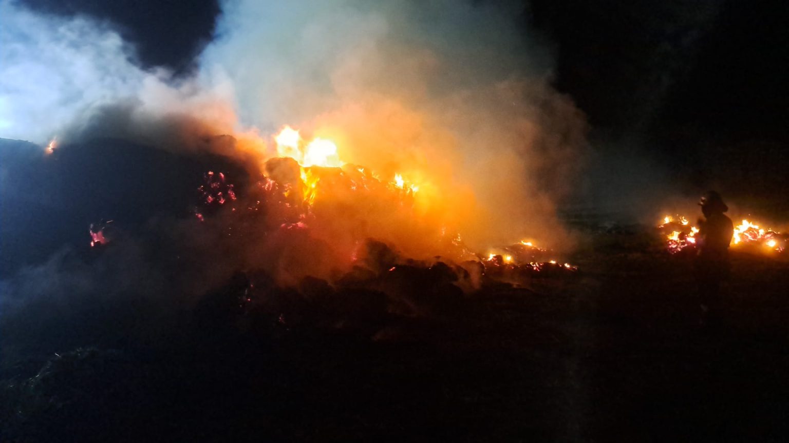Un incendiu violent s-a produs noaptea trecută, pe un câmp din localitatea Trușești. Un depozit de furaje a fost cuprins de flăcări după ce a fost lovit de trăsnet. Alarma a fost dată puțin înainte de ora 21:00.