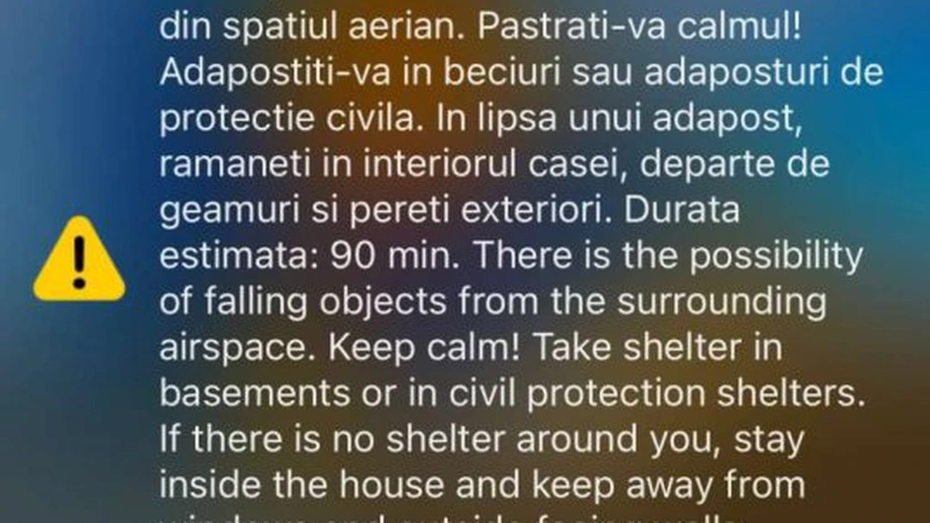Oamenii au primit un mesaj Ro-Alert care îi anunţa că există posibilitatea căderii unor obiecte în zona graniţei cu Ucraina.