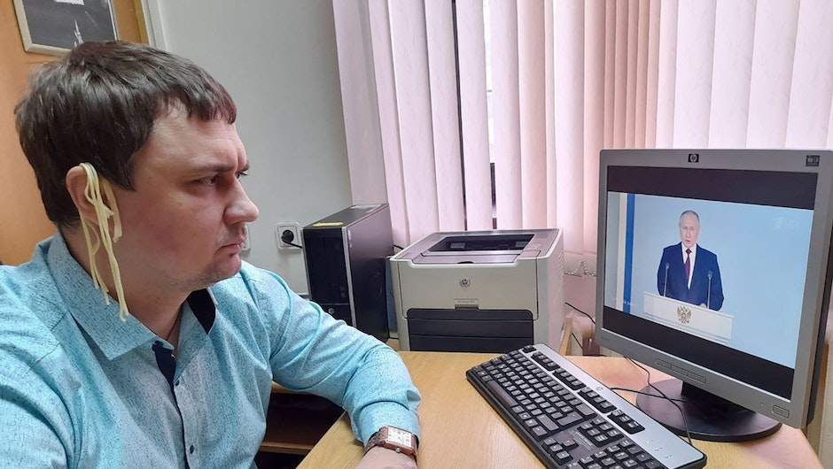 Un politician rus care și-a agățat tăiței de urechi în timp ce asculta un discurs al lui Vladimir Putin a fost amendat cu 1.650 de lire sterline