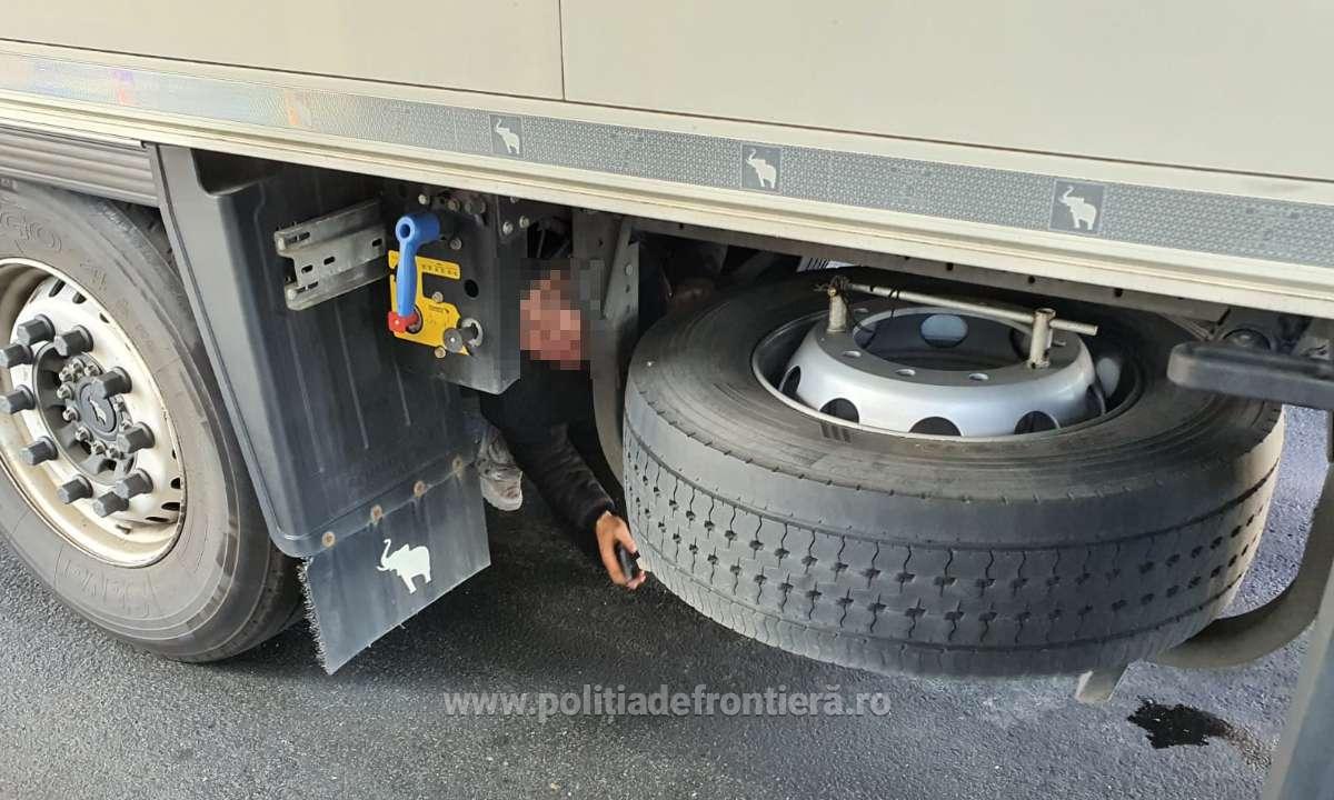 Un tunisian şi un turc au încercat să treacă ilegal frontiera în Ungaria, fiind ascunși deasupra roţii de rezervă a unui automarfar