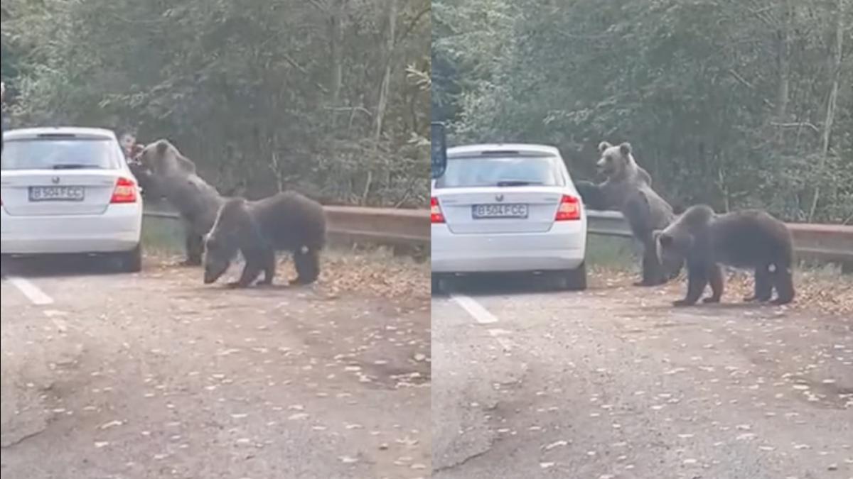 Persoanele aflate în autovehicul au ieșit pe geamul mașinii, moment în care unul dintre animale s-a ridicat în două labe și a sărit pe portiera mașinii. Momentul a fost surprins de un martor aflat în coloana de mașini care se formase pe șosea. În acest moment, nu se știe dacă turiștii atacați de urs au suferit răni.