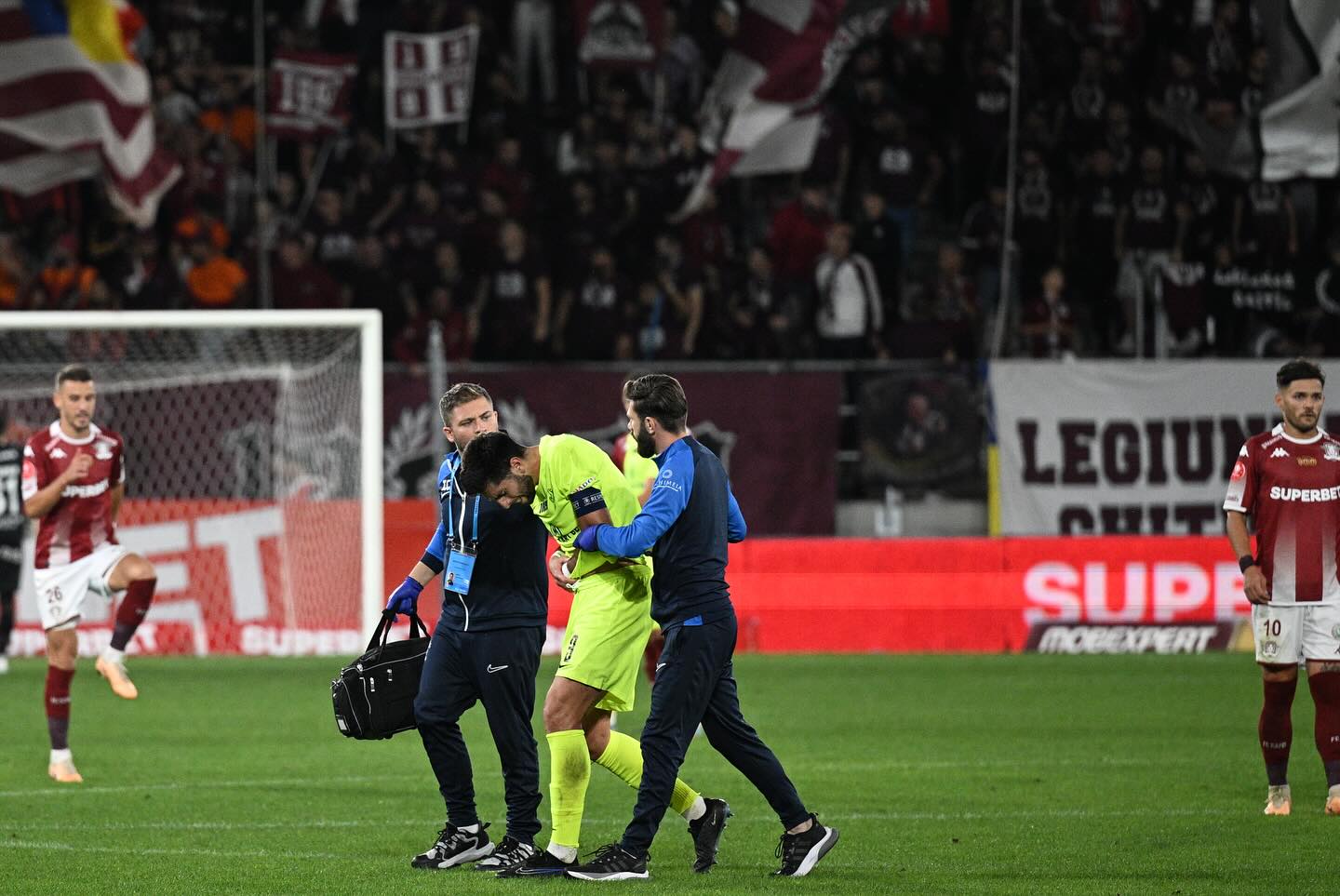 În minutul 65 al meciului din Giulești, Nicolas Samayoa a căzut pe braț după un duel cu un adversar și nu a mai putut continua meciul. Stoperul guatemalez în vârstă de 28 de ani a părăsit terenul cu dureri mari, iar ieșenii s-au temut că ar putea fi vorba de o accidentare gravă a căpitanului lor. Veștile primite din partea medicilor sunt, cel puțin deocamdată, îmbucurătoare, primul diagnostic fiind de entorsă la cot.