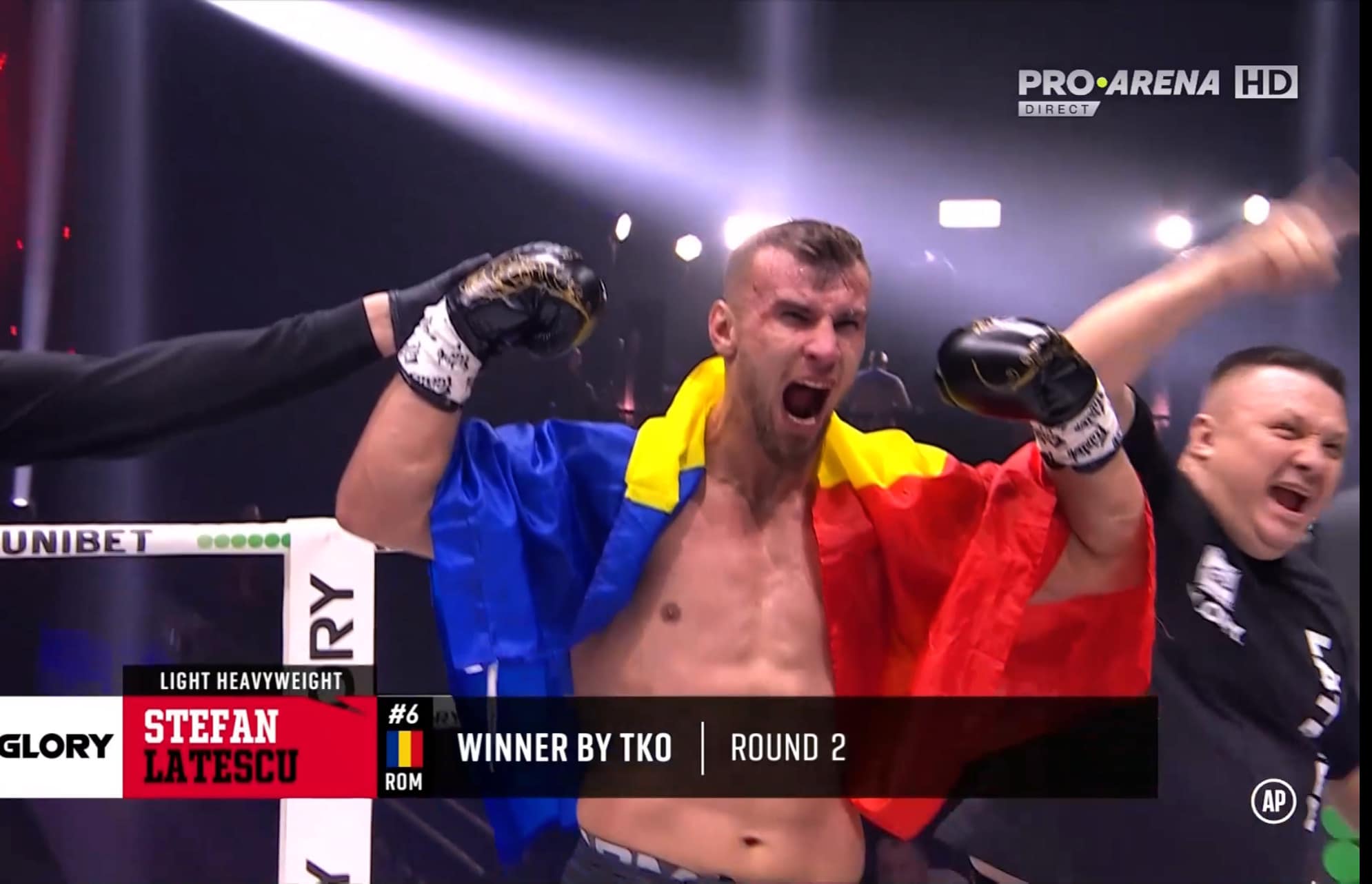 Victorie uriașă pentru Ștefan Lătescu, în Glory! Luptătorul ieșean l-a făcut KO pe marocanul Ibrahim El Bouni și are șanse mari să lupte, anul viitor, pentru titlul mondial