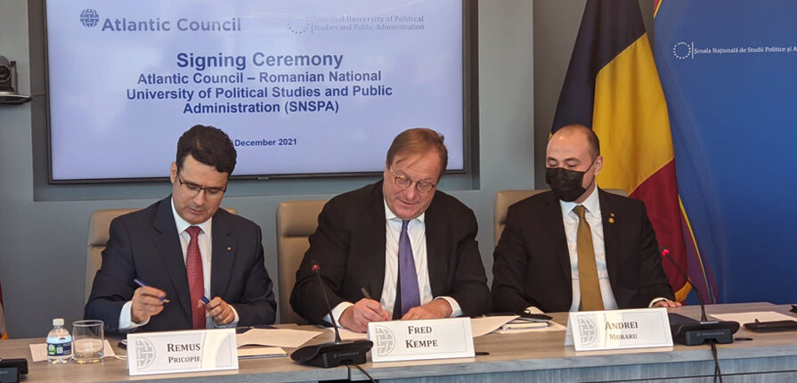 Un acord de parteneriat multianual, care are drept scop consolidarea relației transatlantice și creșterea securității și stabilității în regiunea Mării Negre, a fost semnat miercuri, 1 decembrie 2021, de către rectorul Şcolii Naţionale de Studii Politice şi Administrative (SNSPA), prof. univ. dr. Remus Pricopie, cu Atlantic Council, una dintre cele mai influente și prestigioase organizații de tip think-tank din SUA.