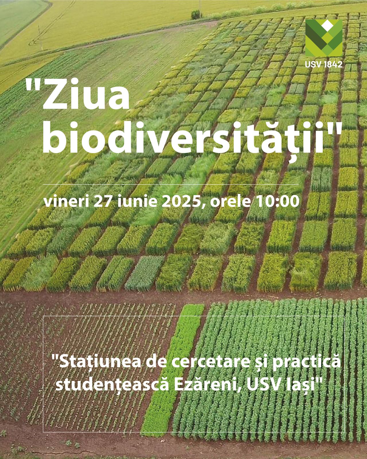 Universitatea de Științele Vieții „Ion Ionescu de la Brad” din Iași (USV), Facultatea de Agricultură prin disciplinele de Ameliorarea plantelor și Genetică organizează Ziua Biodiversității, vineri, 27 iunie 2025, începând cu ora 10:00, la Stațiunea de cercetare și practică studențească Ezăreni, din comuna Miroslava.